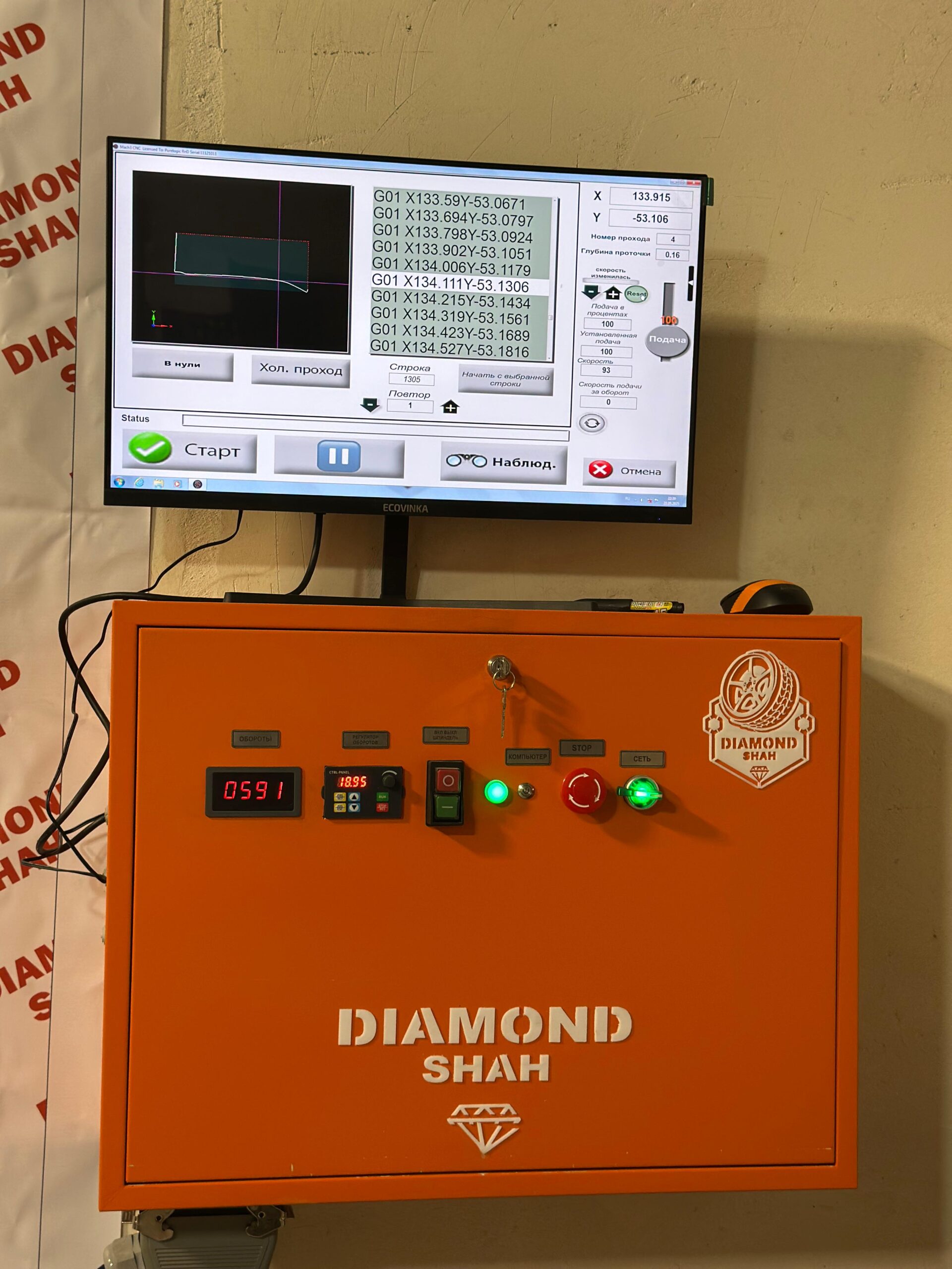 Станок имеет «Встроенный» системный блок и ПO Масh 3, собственный разработанный интерфейс, именно для проточки дисков. Быстро осваивается в использовании и быстро окупает вложения. Время порточки комплекта из четырёх дисков занимает от 1 дo 3 часов. Есть возможность регулировать характер «риски» ( от крупной до зеркальной).